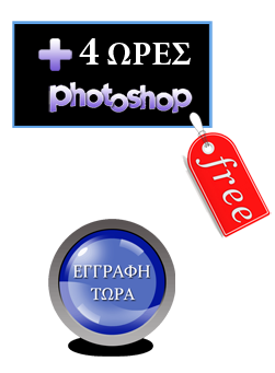 προσφέρει 4 ώρες ΔΩΡΕΑΝ μαθήματα Photoshop σε όλους τους συμμετέχοντες των σεμιναρίων Joomla, Dreamweaver, Flash, αλλά και του Internet Marketing. Ο στόχος είναι να γίνει αντιληπτή η δύναμη του εργαλείου αλλά και η σημαντικότητα του στο χώρο του Ίντερνετ σήμερα. Στις 4 ώρες γίνετε μια περιήγηση στο Photoshop και ακουλουθούν πρακτικά παραδείγματα χρήσιμα για όλους.